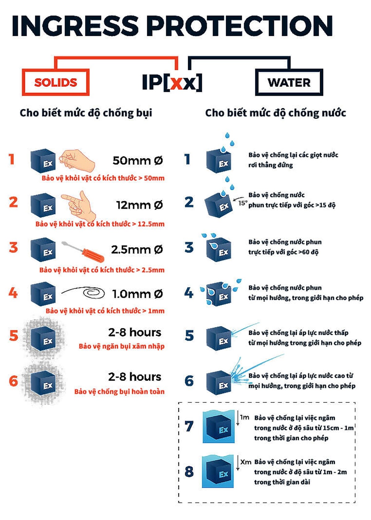 Chỉ số IP thể hiện cấp độ chống nước và bụi bẩn