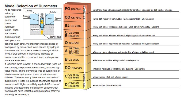 - Shore A : Thường được dùng để đo độ cứng của các dạng đàn hồi, cao su tổng hợp, cao su mềm, nhựa mềm, da….
