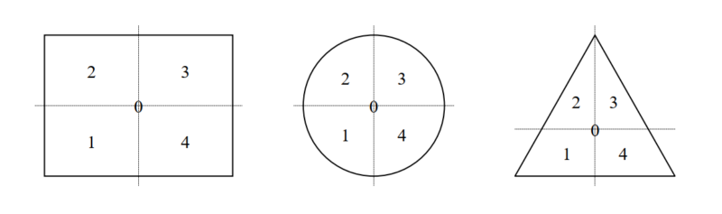 Bộ phận tiếp nhận tải được chia thành 4 phần có diện tích bằng nhau, 4 vị trí kiểm tra độ lệch tâm là tâm của 4 phần đó (xem hình 1).