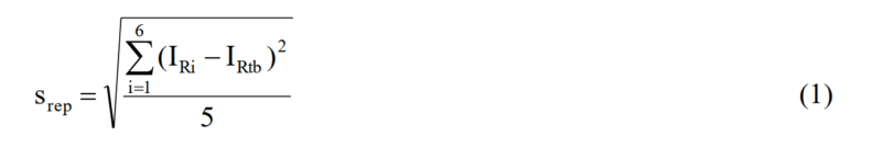 Tiến hành cân lặp lại 6 lần cùng 1 quả cân chuẩn có khối lượng danh nghĩa tương đương với (80 ÷ 100) % của Max. Độ lặp lại của cân được xác định theo công thức: