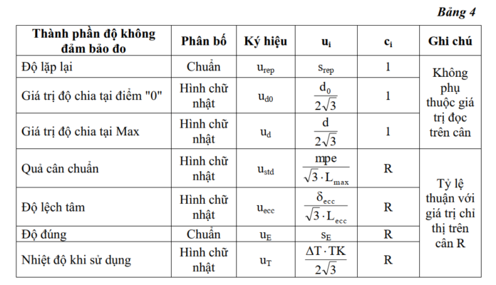 Độ không đảm bảo đo được tổng hợp từ các nguồn trong bảng 4.