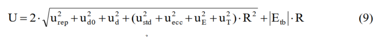 Mối quan hệ của độ không đảm bảo đo khi sử dụng U với giá trị chỉ thị của cân R được xác định theo công thức: