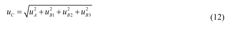– Thành phần phát sinh từ độ ổn định của phương tiện đo dùng làm chuẩn công bố trong tài liệu kỹ thuật chia cho căn bậc hai của 3, xác suất phân bố hình chữ nhật.
